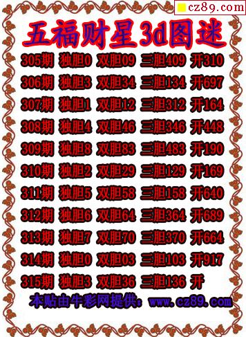 首页 > 福彩3D图谜 > 五福财星三胆2025315期3d图谜(原创)