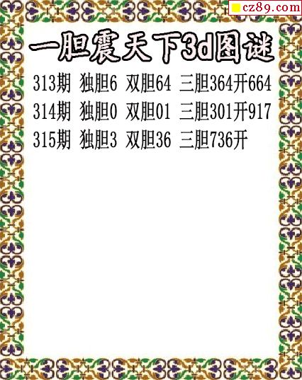 > 一胆震天下独胆2025315期3d图谜(原创)