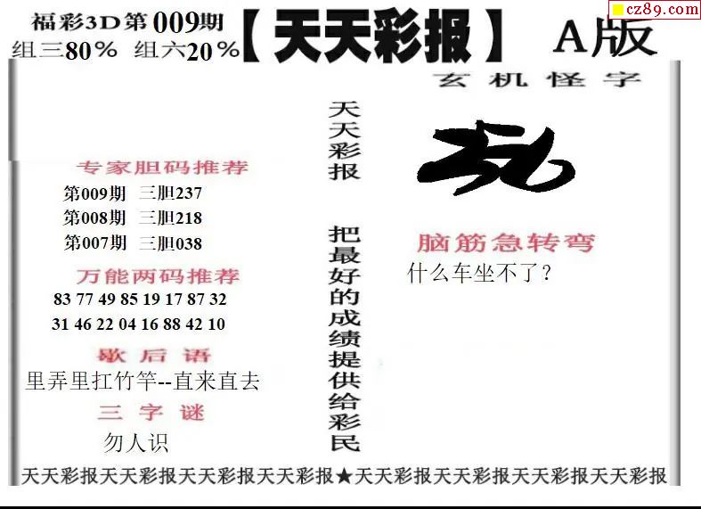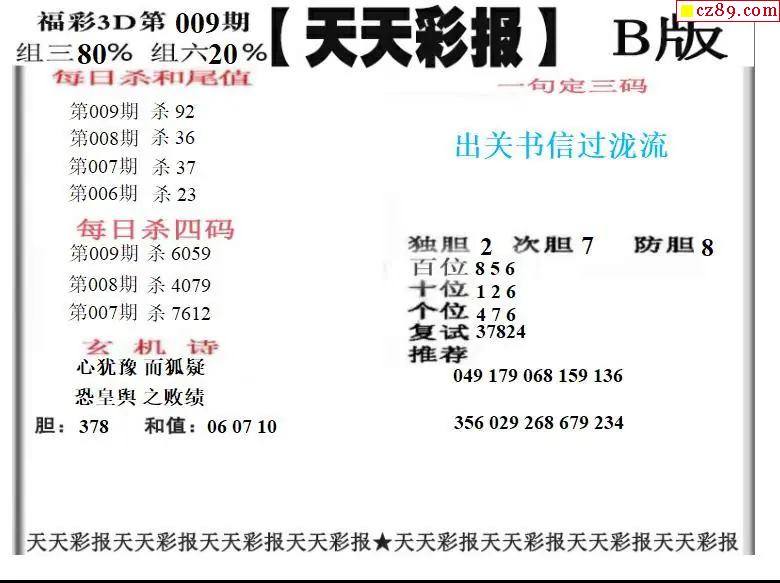 福彩3D2026009期天天彩报A版 天天彩报B版