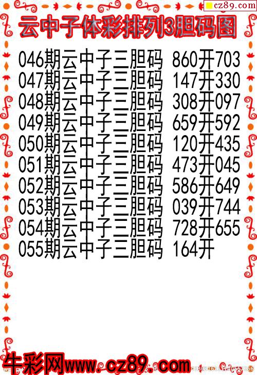 26年055期云中子体彩排列3胆码图