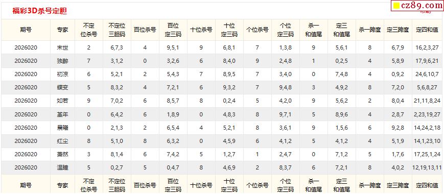 26年020期彩宝贝专家福彩3D杀号定码图表