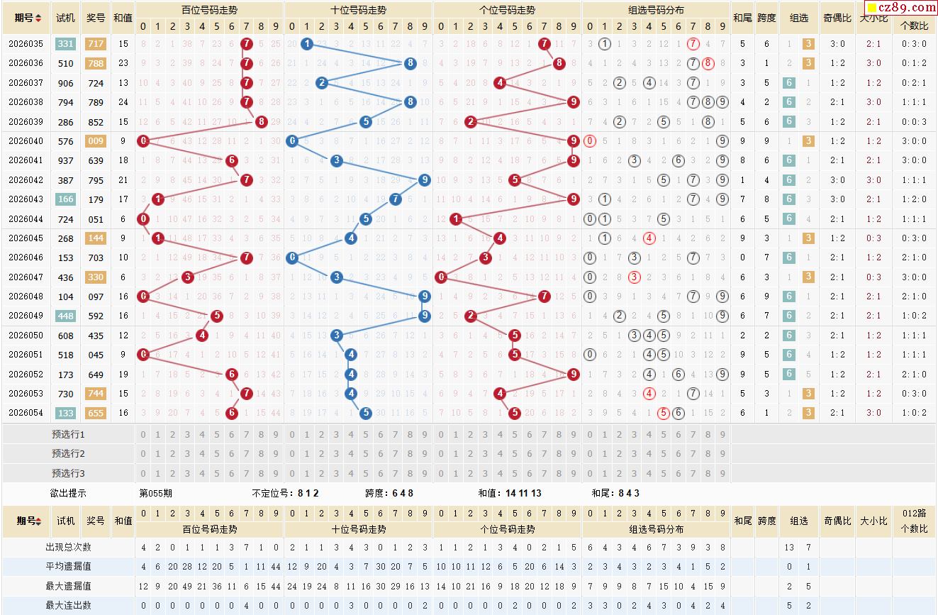 首页 > 排列3预测 > 055期体彩排列3近期历史号码图表